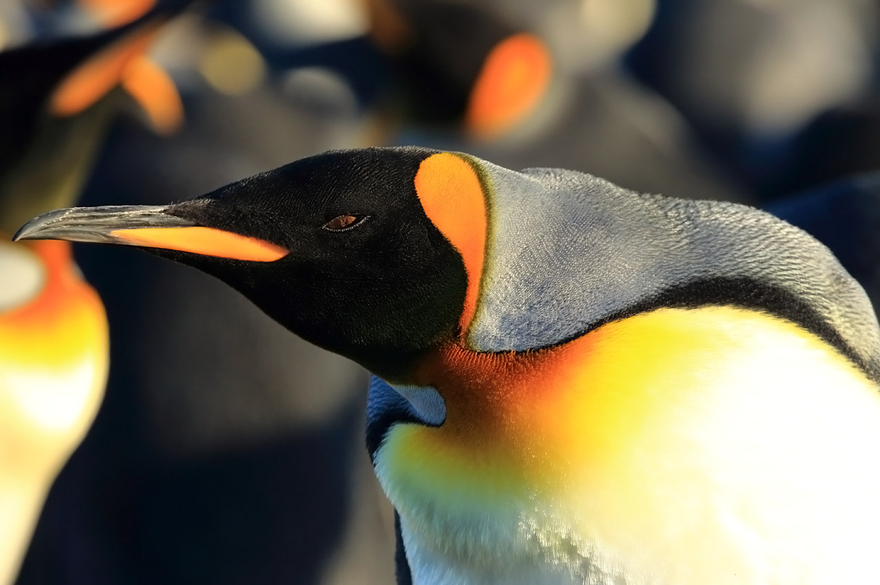 Koningspinguïn 19 juli 2021 1278 × 850 Koningspinguïn Kleurige gratie Vlakbij zo’n kolonie zitten is weergaloos. Je komt ogen te kort. Soms komen de vogels om je heen staan, maken dan hoge loeiende geluiden of rommelen en plukken aan je schoenveters. Volunteer Point, East Falkland.