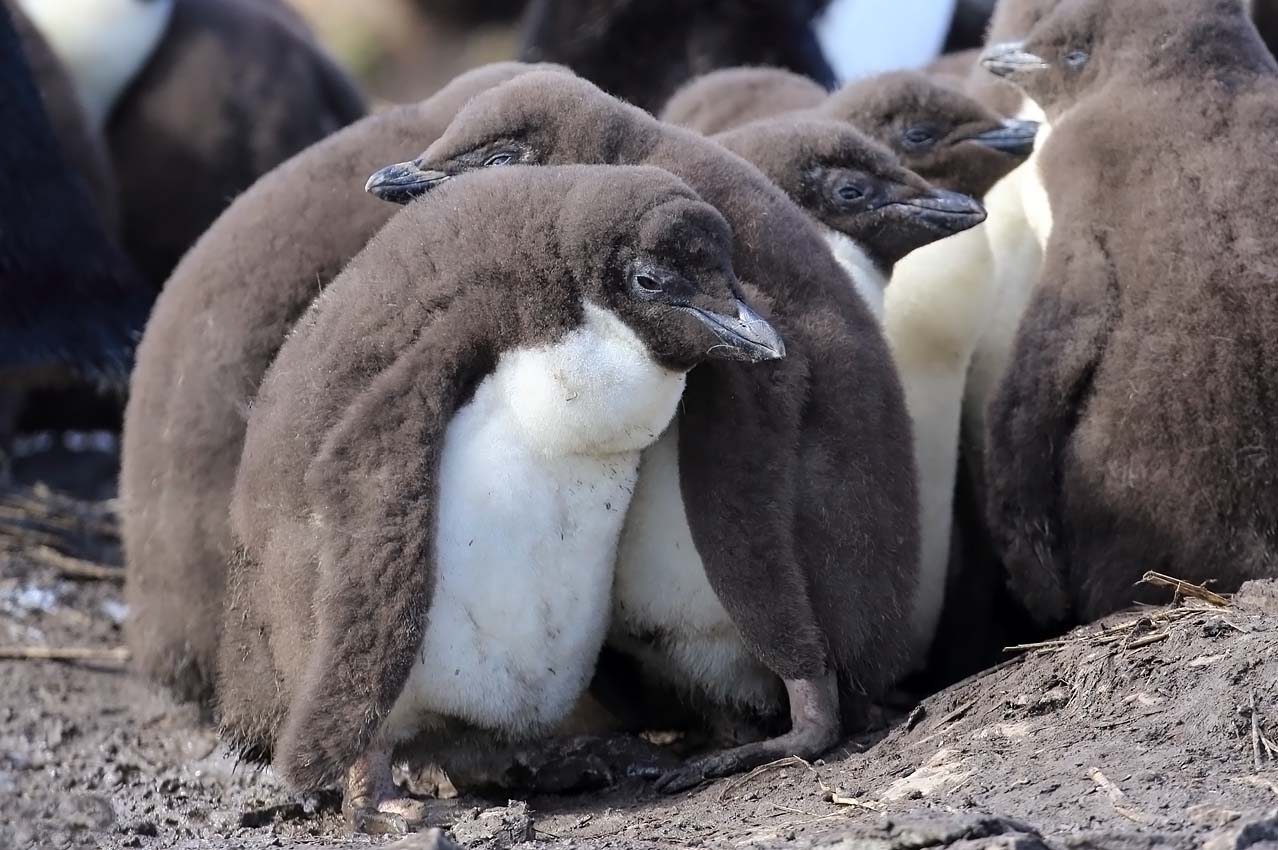 Zuidelijke rotspingu:in 19 juli 2021 1278 × 850 Zuidelijke rotspingu:in Crêche brengt veiligheid Jonge Zuidelijke rotspinguïns klitten bij elkaar in een crêche. Een paar oude vogels houden de wacht, want overal vliegen grote jagers (roofmeeuwen, reuzenstormvogels en caracara’s (roofvogels). Carcass Island, West Falkland.