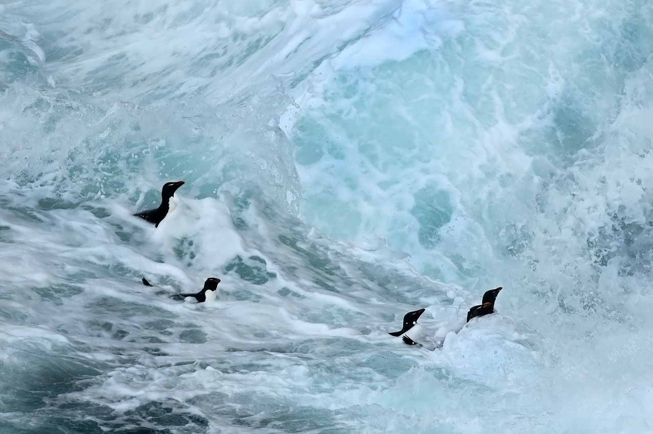 Op de Falkland Eilanden, broeden veel Zuidelijke rotspinguïns. Ze broeden ook op Sea Lion Island. Na verloop van tijd keren de rotspinguïns terug naar hun jongen, maar…daar moeten zij wel wat voor doen. Als het hard waait beuken de golven met oorverdovende kracht op de loodrechte rotswanden. In die bruisende heksenketel moeten de rotspinguïns aan land zien te komen. Hoe die vogels daarin slagen is en blijft onvoorstelbaar. Rotspinguïns zijn echte helden! Sea Lion Island, South East Falkland.